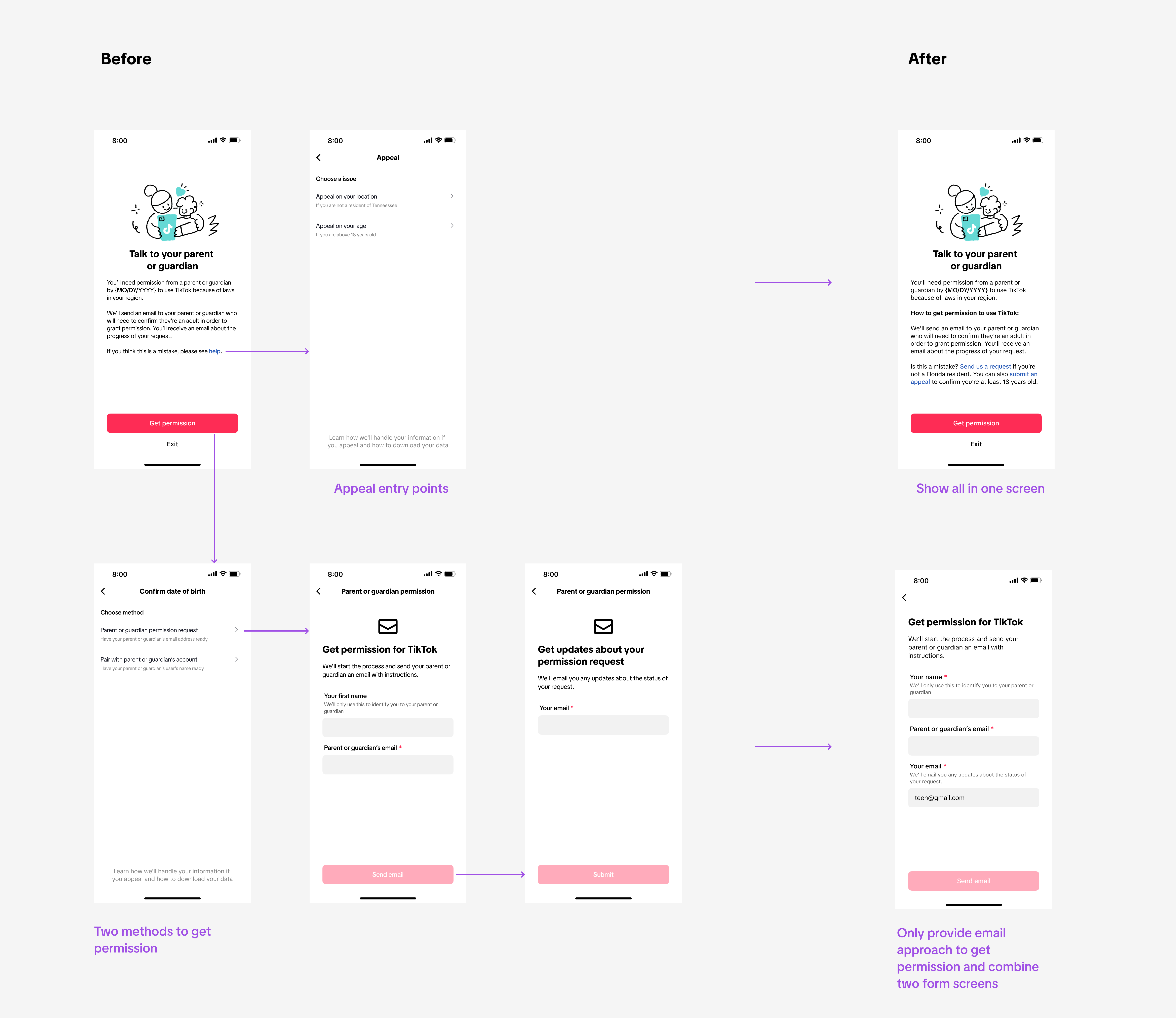 While prioritizing the experience of underage users is essential, I emphasized that addressing the challenges faced by parents is equally important. The usability of the flow and the emotional experience of both end-users significantly impact the overall success of the permission-requesting process.