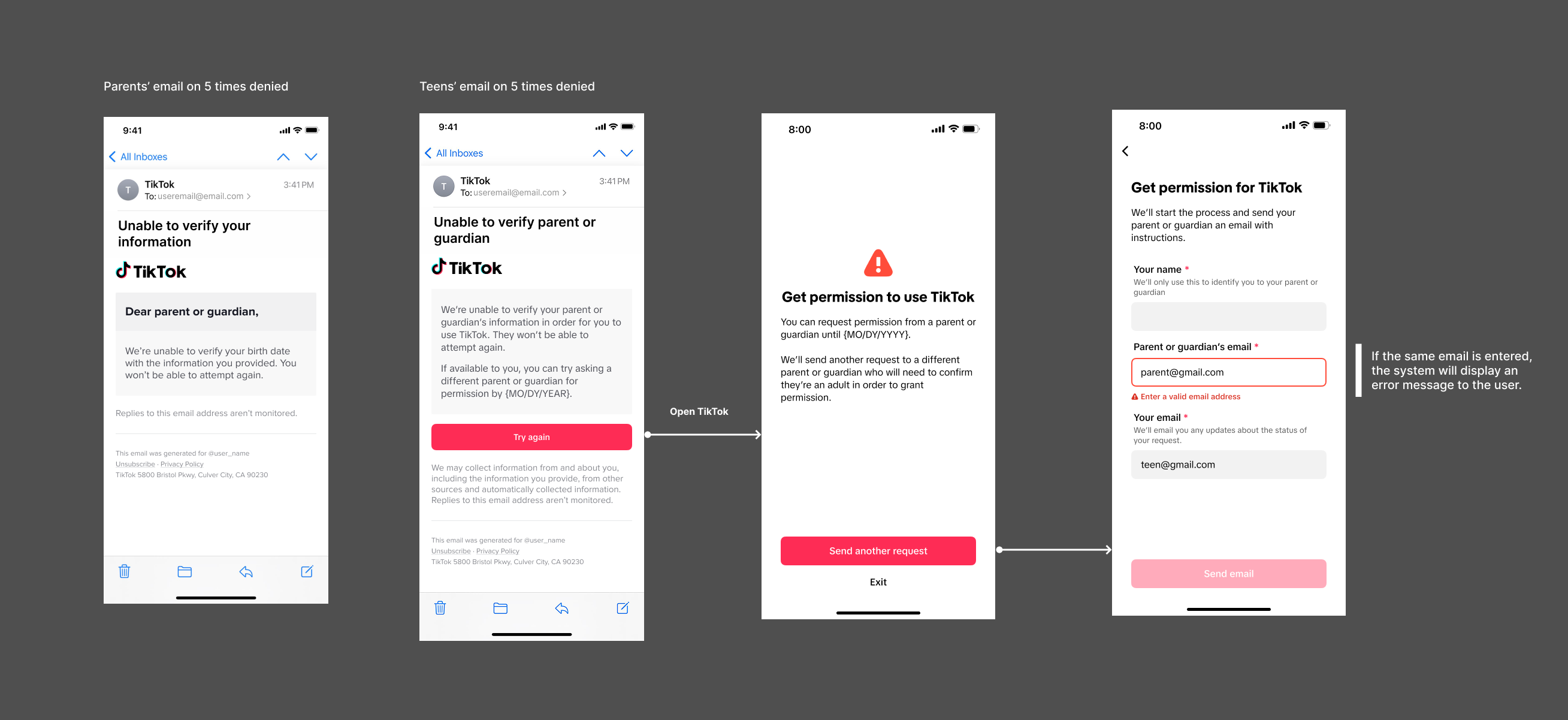 4. Multiple emails with parental consent link sent by teens can be confusing sometime.