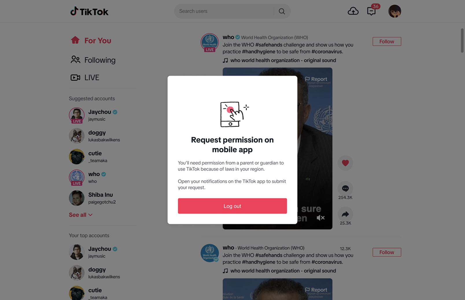 ❌ Before: Users still be able to log access to other TikTok page if they don’t click Log out button
